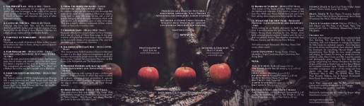 I had a lot of fun with the artwork for this one. The writing wrapped around the trees is all taken from the lyrics of the title track. Elly Lucas provided the lovely photos and we had a very surreal afternoon wrapping trees in bandages for the photoshoot. As well as the album art and promo material I built Gav a custom wordpress theme.